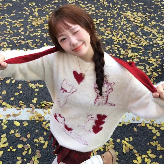 【セーター】送料無料 猫柄 秋冬 猫柄 韓国系 カジュアル系 可愛い ニット 長袖 猫セーター レディース 長袖 秋冬 ファッショ 猫雑貨 猫グッズ 千葉