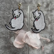 くるんとしたシルエットが可愛い、グレー猫ちゃんの刺繍ピアス。