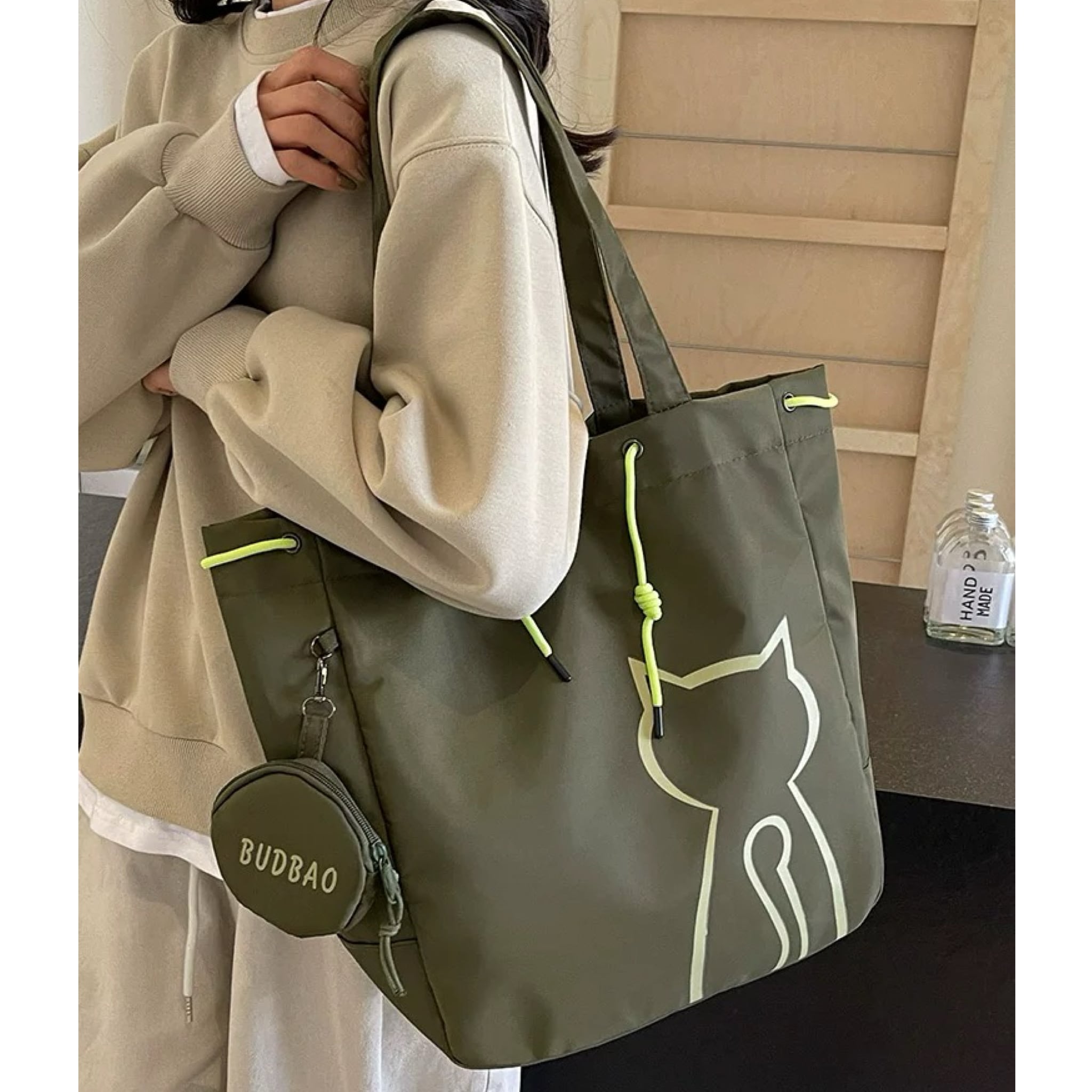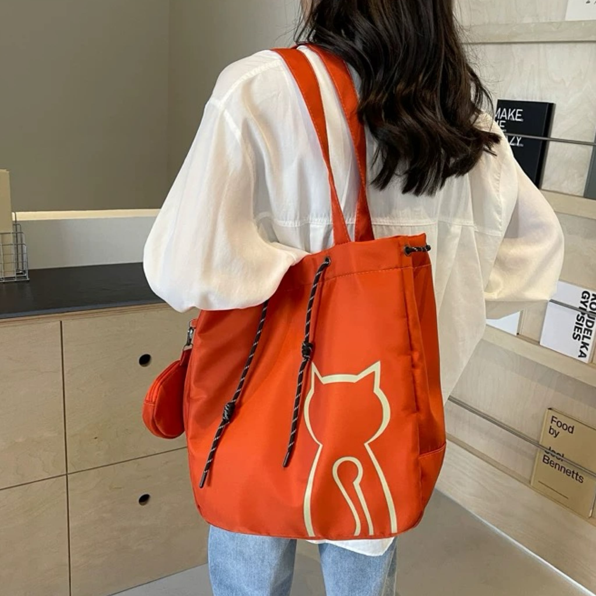 【バッグ】 猫柄ナイロントートバッグ コインケース付 猫柄 大容量 猫 キャット ネコ ねこ 猫グッズ 猫雑貨 八千代 プレゼント cat goods