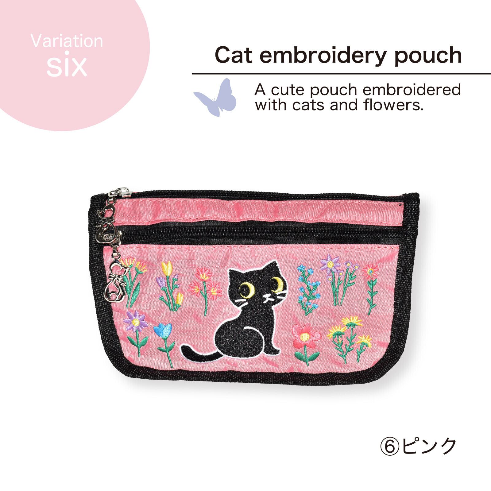 【ポーチ】送料無料 おしゃれ かわいい 黒猫 刺繍入りネコポーチ 小物入れ 大容量 軽量 猫柄 猫 キャット ネコ ねこ 猫グッズ 猫雑貨 八千代 プレゼント cat goods