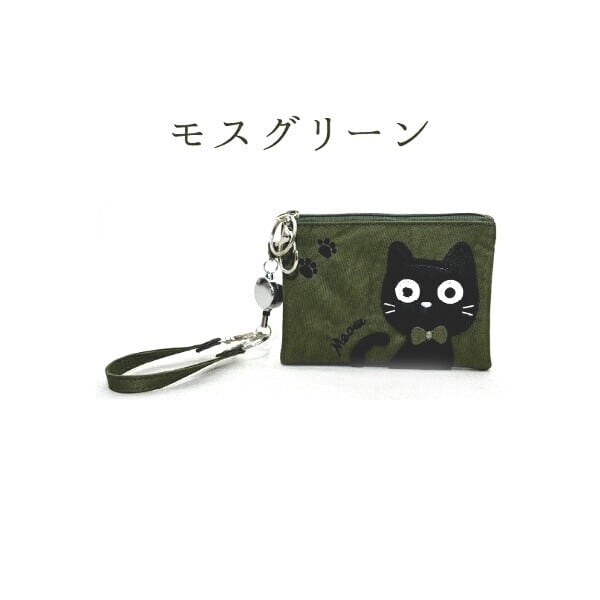 【カードケース】送料無料 大容量 リール付き かわいい リール付き IDホルダー 35cm 首かけ 猫 アップリケ 黒猫雑貨 千葉 猫柄 キャット ネコ ねこ 猫グッズ 猫雑貨 cat