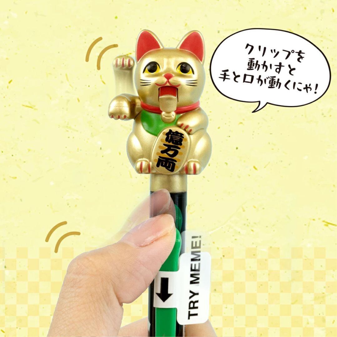 福を招き入れる愛らしいポーズで人気の招き猫がアクションペンで登場。 商売繁盛や千客万来の願いが込められている縁起ものです。猫好きな方へはもちろんお店での使用や、お土産・プレゼントにもおすすめ。 ただの筆記用具ではなく、ノックすると手と口が動くユニークな文房具です。 会社・仕事・学校での使用はもちろん、話題作りにも!海外でも日本の文化が注目されている今、贈り物・プレゼントにも人気!