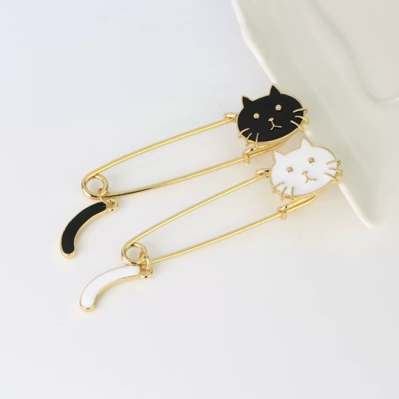 【カブトピン】 白猫 黒猫 しっぽ猫ピンブローチ ネコ ねこ キャット 猫 cat pin 猫ブローチ 猫雑貨 猫グッズ ピンバッチ 猫アクセサリー 千葉