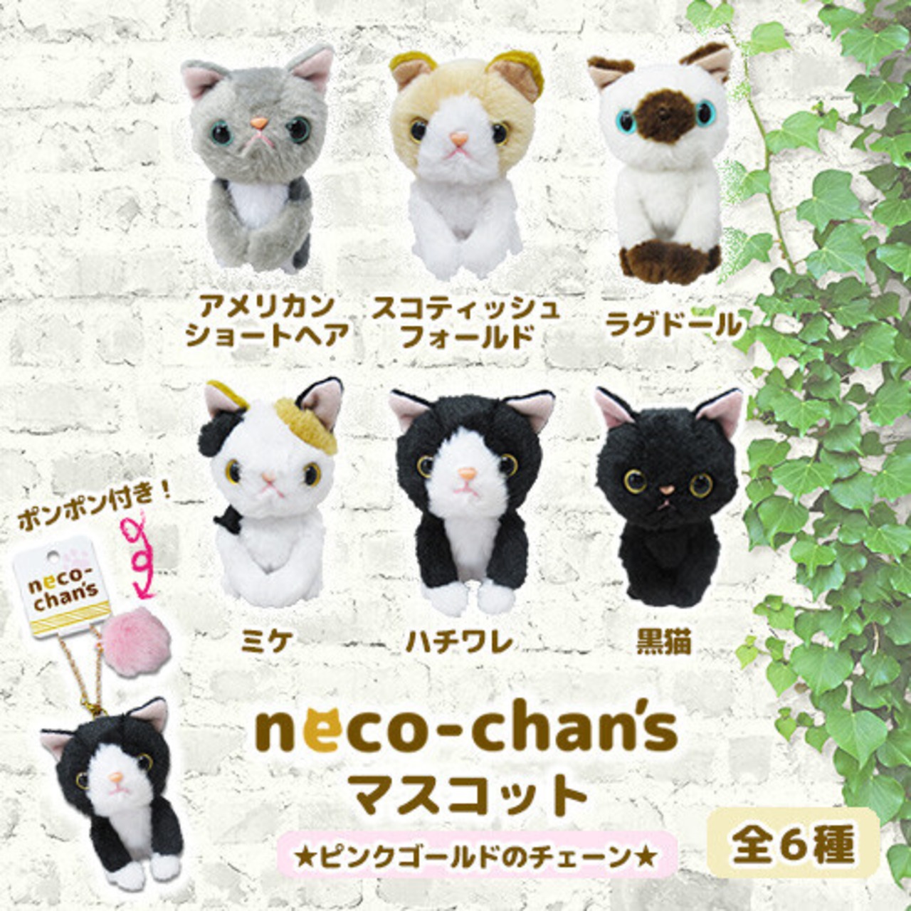 おすまし顔した6種類の可愛いねこのマスコットです。