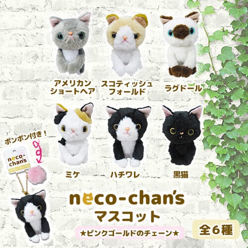 種類はアメリカンショートヘア、ラグドール、黒猫、スコティッシュフォールド、ハチワレ、ミケ。