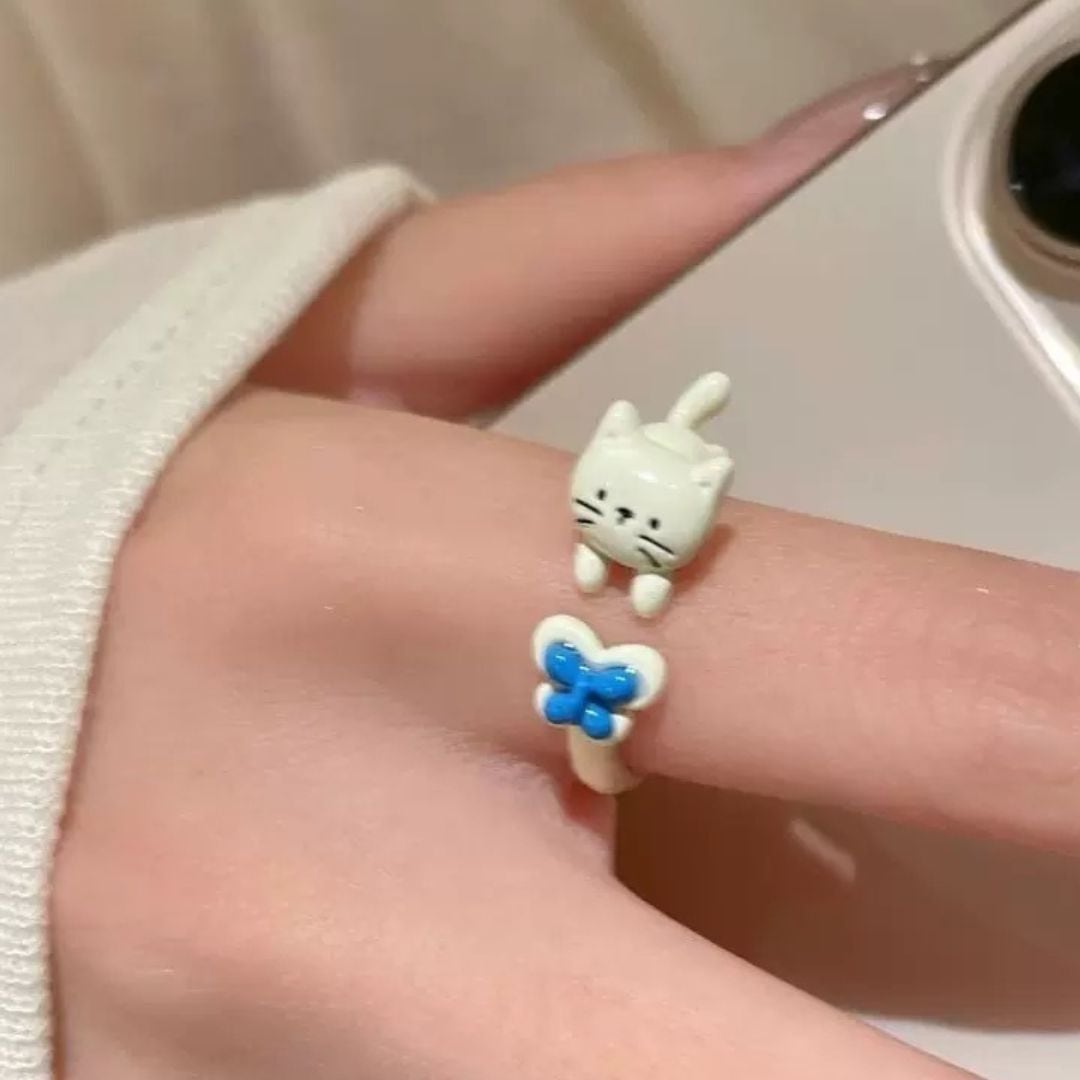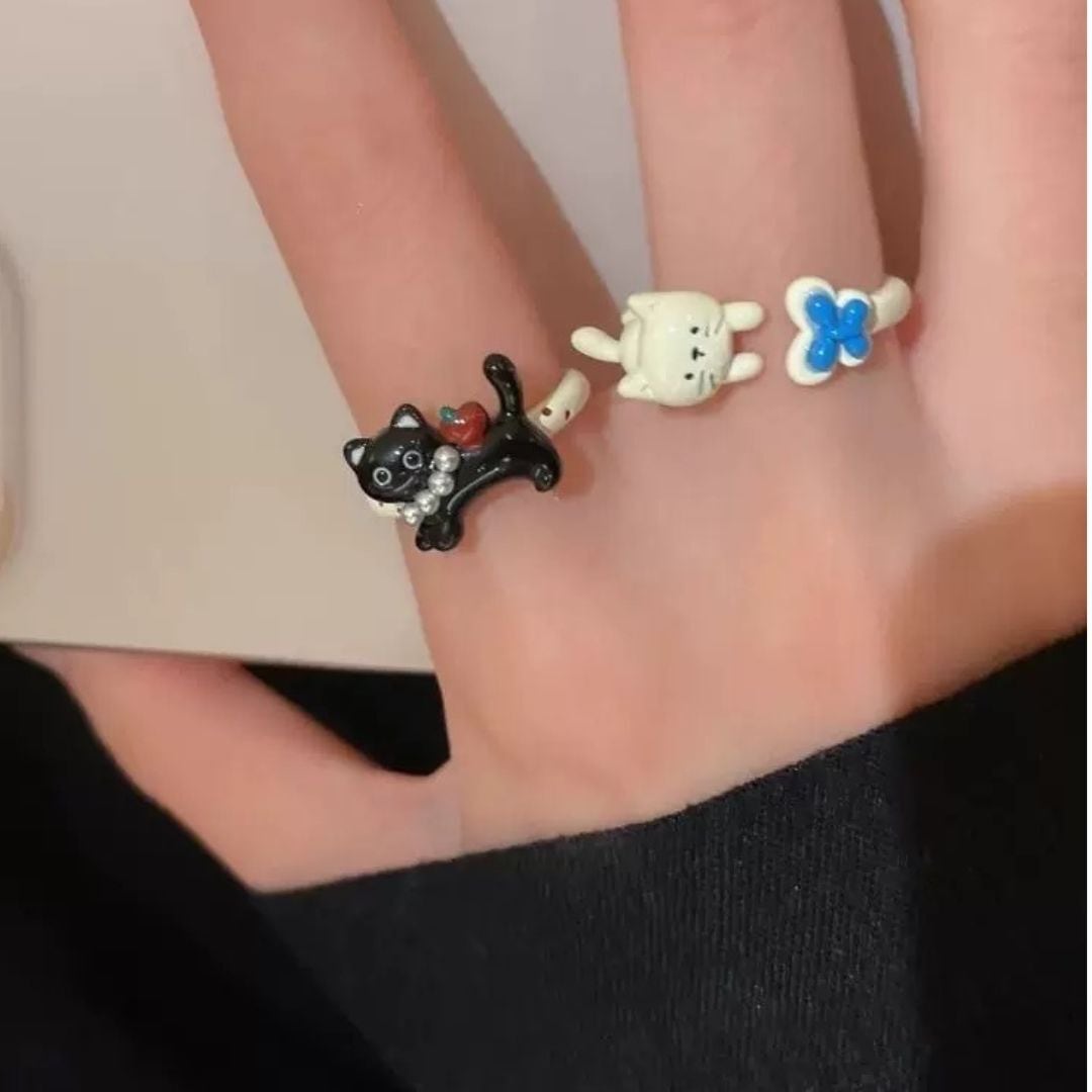 【リング】送料無料 黒猫指輪 白猫指輪フリーサイズ 猫 リング 猫アクセサリー かわいい 指輪 猫アクセサリー レディース 猫 調整可能 猫柄 可愛い 女子 キャット 猫雑貨 猫グッズ 千葉 八千代 cats
