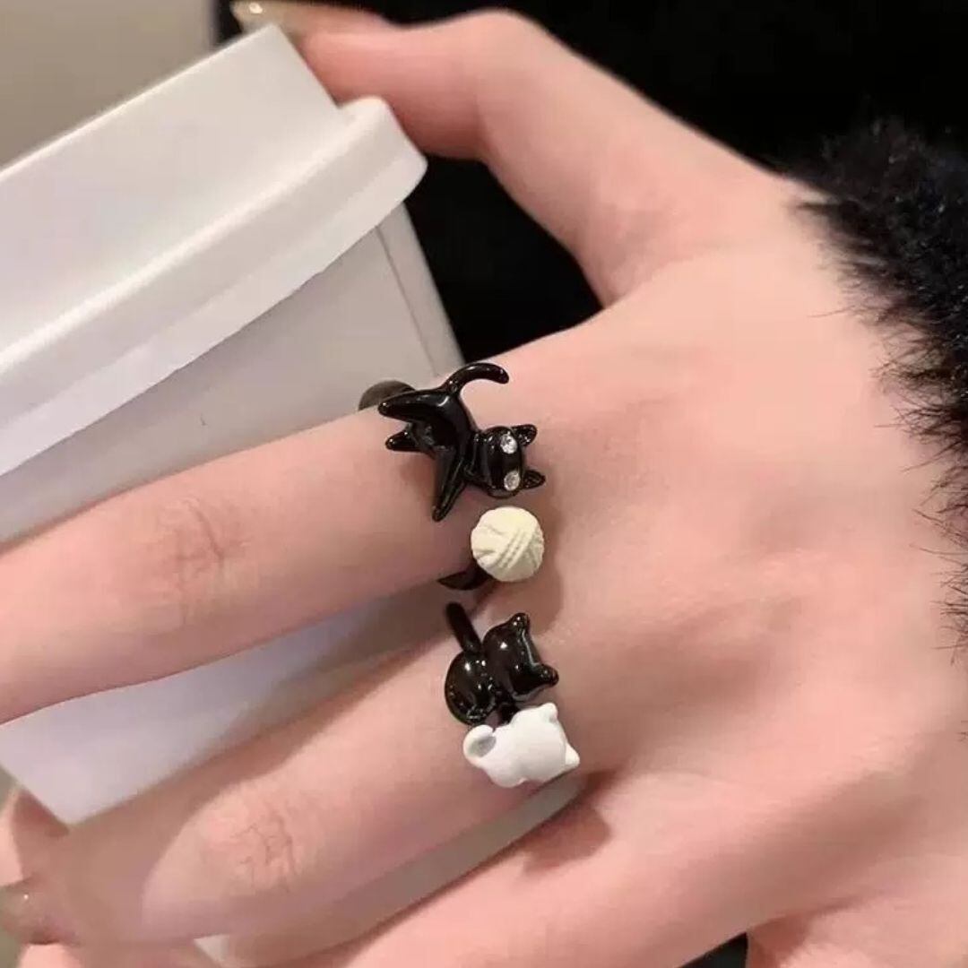 【リング】送料無料 黒猫指輪 白猫指輪フリーサイズ 猫 リング 猫アクセサリー かわいい 指輪 猫アクセサリー レディース 猫 調整可能 猫柄 可愛い 女子 キャット 猫雑貨 猫グッズ 千葉 八千代 cats