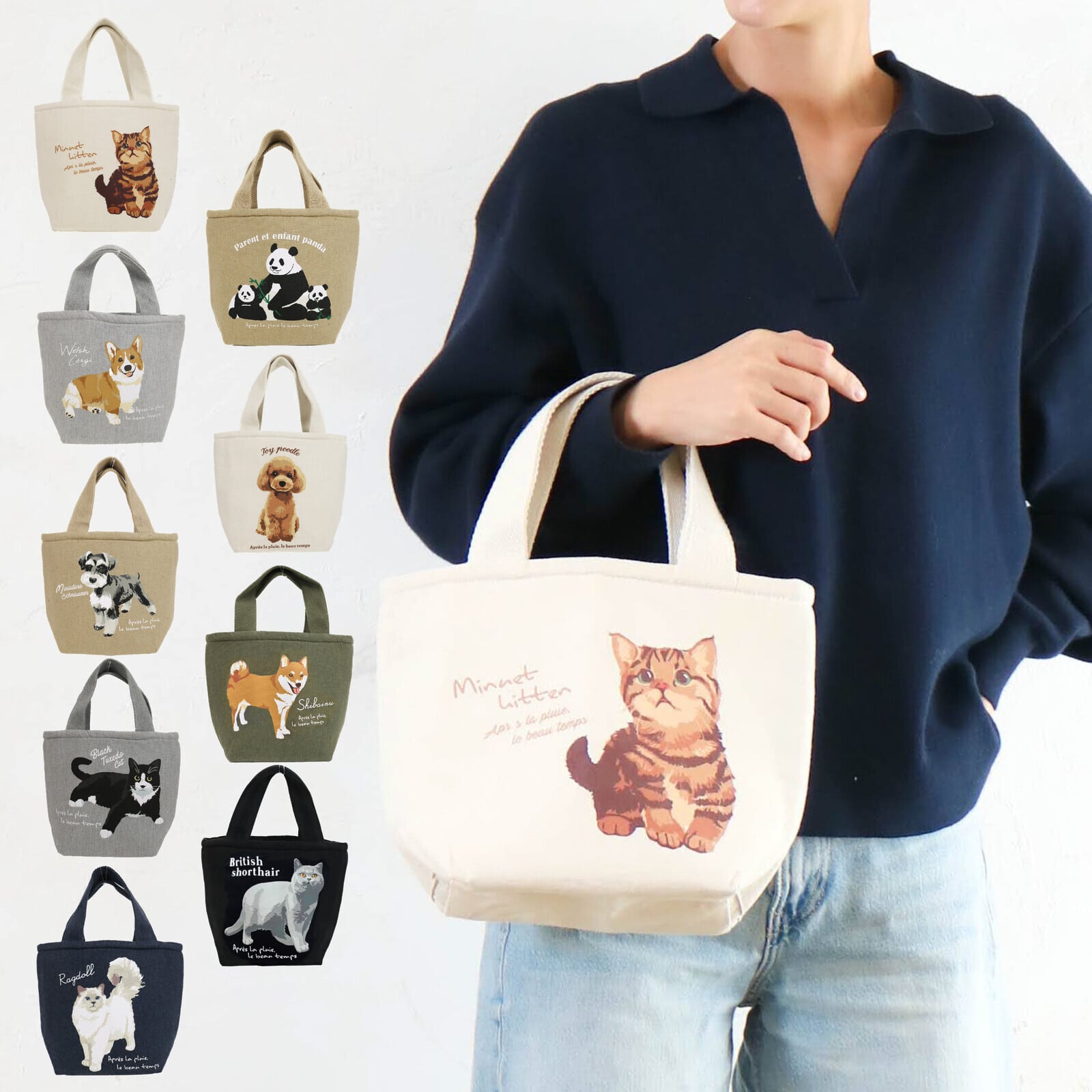 【バッグ】ポケット付き保冷トート シマエナガ パンダ 猫柄 猫 キャット ネコ ねこ 猫グッズ 猫雑貨 千葉 プレゼント cat goods