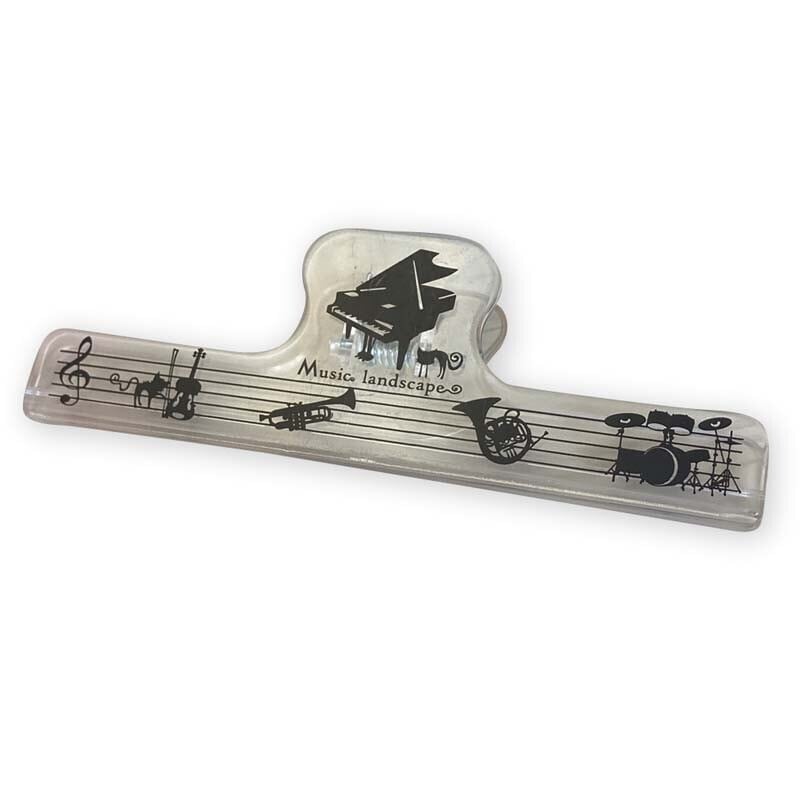 【クリップ】ロングクリップ クリアブラック ミュージック ランドスケープ Long clip Clear Black 音楽猫 ネコ ねこ 黒猫雑貨 猫好き cats goods 猫グッズ 千葉 猫雑貨 八千代