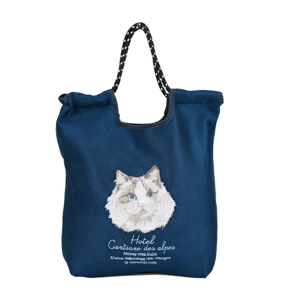 【バッグ】メッシュ刺繍コードトート 猫柄 猫 キャット ネコ ねこ 猫グッズ 猫雑貨 千葉 プレゼント cat goods
