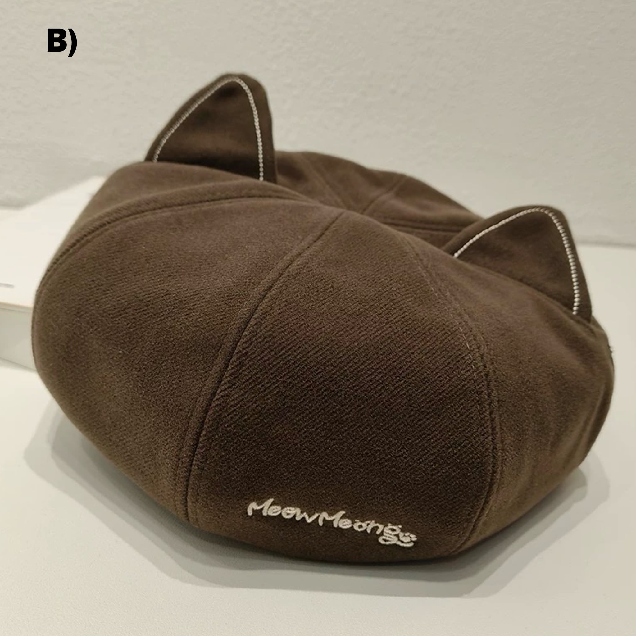 【帽子】送料無料 猫耳 付き ベレー帽 レディース 帽子 刺繍 ネコ ねこ キャット猫 ファッション Cats Hat